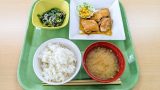 ご飯 / きぬさやと豆腐味噌汁 / 鶏肉のから揚げ / ひじき煮