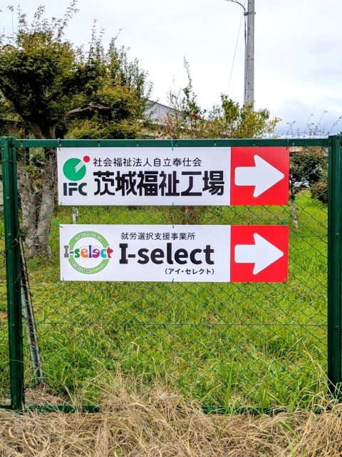 そこで今回、『茨城福祉工場』の看板を一新し、さらに10月1日に新規開所した就労選択支援事業所『I-select(アイ・セレクト)』の新しい看板を設置いたしました!