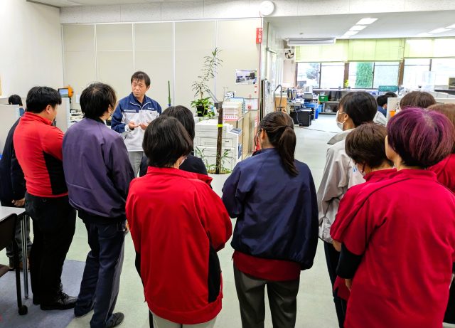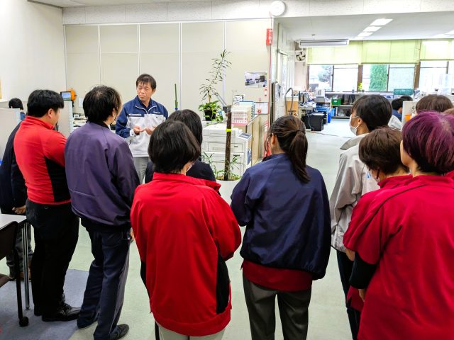 当法人の事業内容などをお聞きいただいた後、実際に各作業現場をご見学いただき、製造ユニット長や情報ユニット長より、具体的な作業内容や作業をする上での注意点などについてご説明させていただきました。