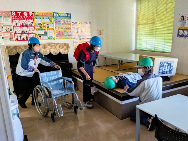 茨城福祉工場では、災害時における避難を安全かつ迅速に行うことを目的に、 年4回の防災避難訓練を行っております。