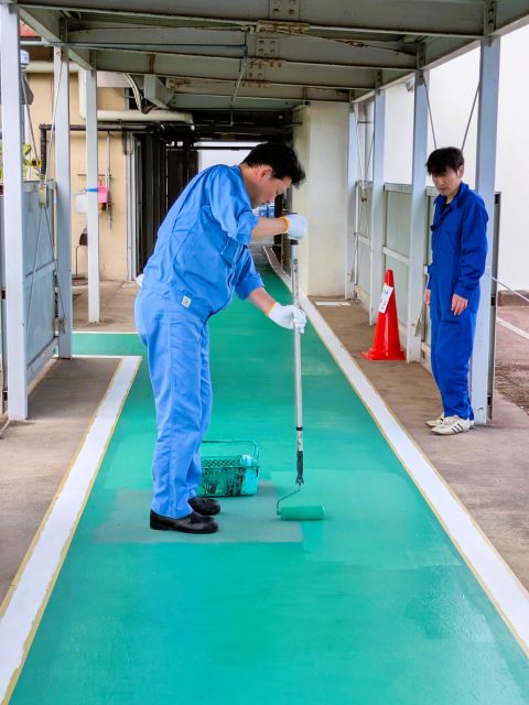 令和7年11月14日(金)に、三菱重工業株式会社 日立工場特称会(※1)海下地区の皆様(10名)がご来場くださり、工場内の安全通路の塗装や建屋の外壁洗浄、住宅棟通路等の洗浄作業を行ってくださいました。