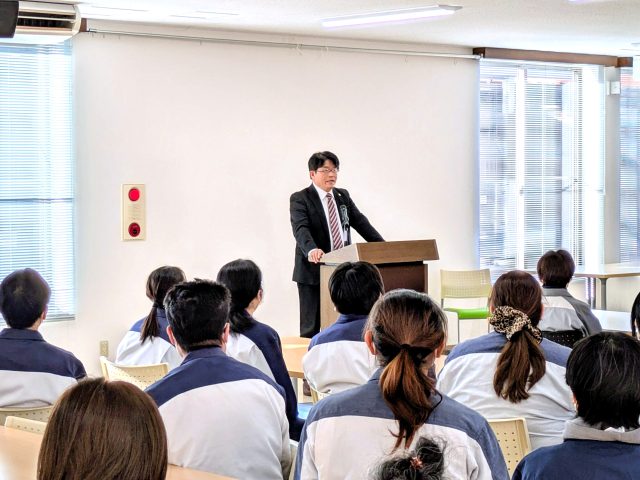 挨拶の中では、現在取り組んでいる中期経営戦略の進捗や、本年度の法人運営の方針について述べられた後、令和8年がさらなる飛躍の年となるよう期待を寄せられるとともに、2年後の創立50周年という節目を見据え、「心身の健康を第一に、無理をせず、自分自身を大切にしながら充実した一年にしていきましょう」と、従業員へ向けて温かい激励の言葉が贈られました。