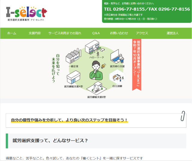 表記の件、令和7年10月に新しく開始しました、就労選択支援事業所『I-select(アイ・セレクト)』について、ホームページをリニューアルしました!