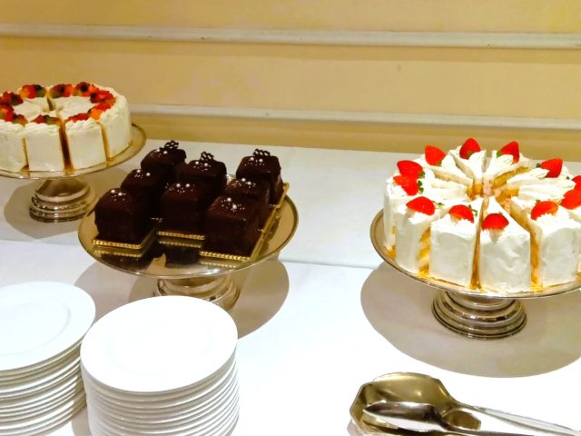 お楽しみの食事は本格的な中華コース料理が振る舞われ、中でもエビチリは「最高!」との声が上がるほどの大好評でした。さらに食後には、色とりどりのケーキが並ぶデザートビュッフェも用意。美味しいケーキを前に「別腹です♪」と笑顔で並ぶ方々の大行列ができるなど、会場は終始、あたたかな熱気に包まれていました。